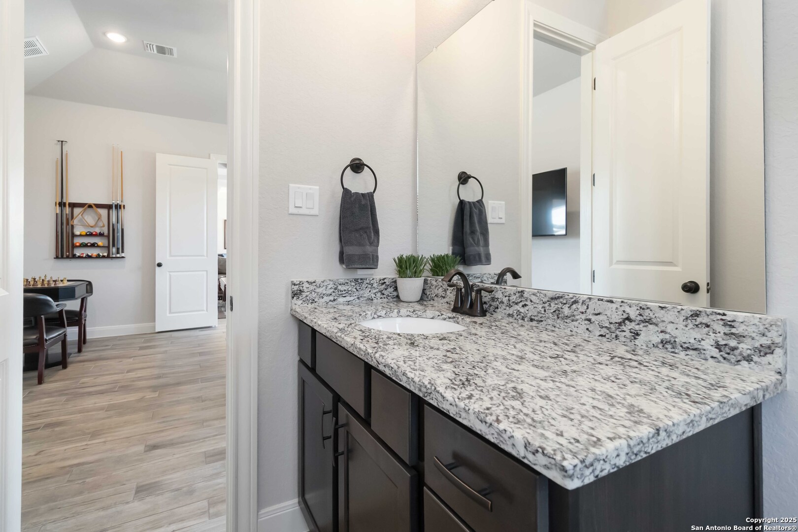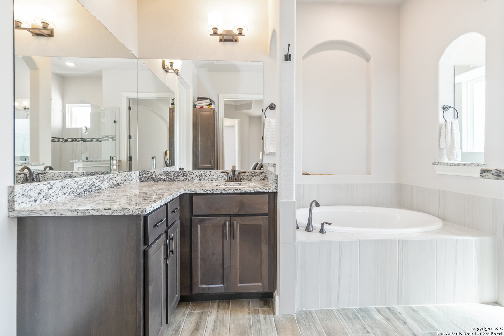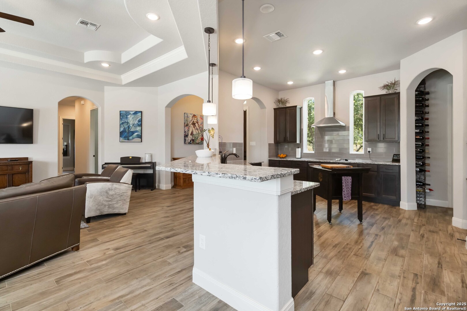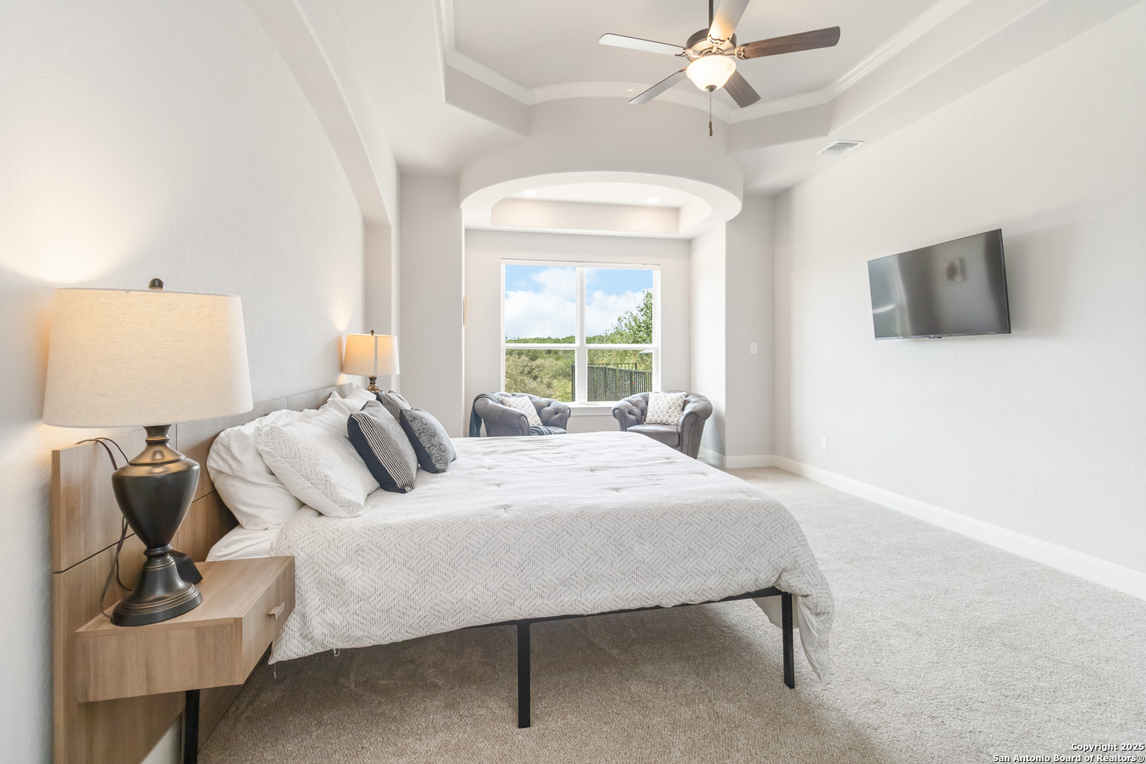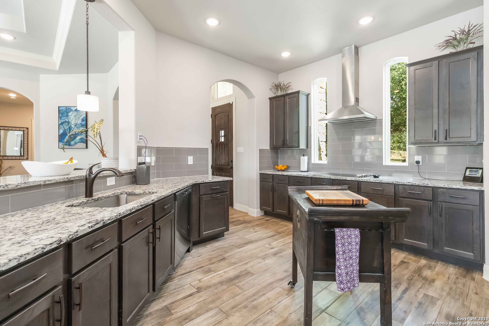 Step into hill country elegance with this striking one story residence, nestled on a sprawling 3.36 acre lot in the exclusive Mystic Shores community. Boasting 3 bedrooms, 2.5 baths, and 2,544 sq ft of thoughtfully designed living space. This home delivers both comfort and sophistication. The open-concept layout flows effortlessly from the foyer through the main living area and into the chef's kitchen, complete with a generous center island, breakfast bar, granite surfaces, and custom cabinetry. Tray and stepped ceilings accent many rooms, while strategically placed wall niches offer subtle architectural interest. Retreat to the primary suite, offering a sitting alcove, double vanities, a garden tub, separate shower, and a large Bespoke walk-in closet. Two additional bedrooms are supported by a full bathroom and a powder room, ideal for guests or flexible use. A dedicated game or media room adds extra living potential with it's own powder room, closet and outdoor access leading the the pool! Step outside into your private outdoor haven. A sparkling in-ground pool with an elegant water feature that adds a touch of resort-style luxury. An oversized covered patio anchored by a built-in fireplace invites year-round enjoyment, whether it's quiet mornings or entertaining under the stars. Nestled in the backyard, the gazebo offers a serene, shaded retreat ideal for morning coffee, evening gatherings, or quiet afternoons surrounded by nature. Just steps away, the greenhouse provides a year-round haven for gardening enthusiasts-whether you're growing fresh herbs, vibrant flowers, or seasonal vegetables, this space is both functional and inspiring. The versatile 30' x 60' metal RV building offers exceptional functionality and space, ideal for storing RVs, boats, vehicles, equipment, or even converting into a workshop or hobby space. Built to last with durable steel construction, this structure features high-clearance entry, wide roll-up doors, and ample interior room for oversized vehicles and storage needs. Whether you're a full-time RV enthusiast, collector, or business owner, this building provides the security, space, and flexibility to accommodate a wide range of uses. Beyond your front door, Mystic Shores rewards residents with expansive amenities: parks, trails, community pool access, lakefront recreation, and more - all within a community that blends natural beauty, privacy, and convenience. Don't miss the chance to own a move-in ready, architecturally rich home in one of Spring Branch's most desirable enclaves.