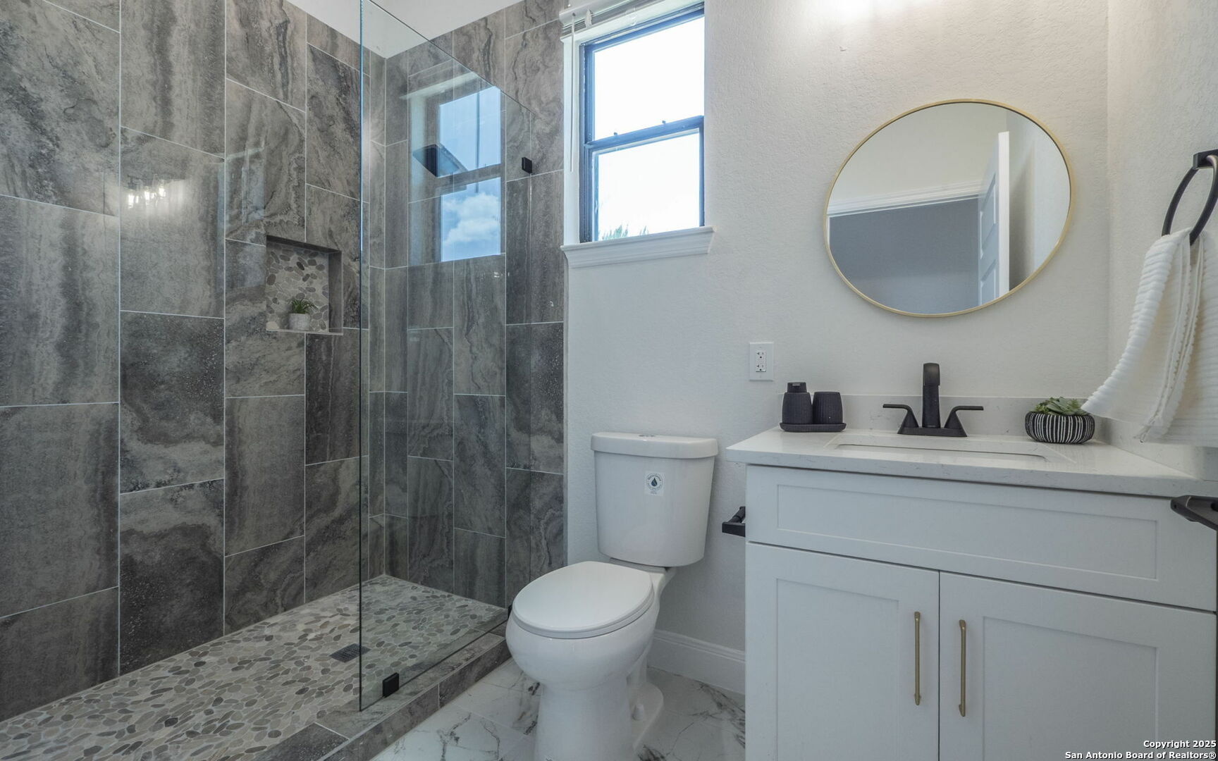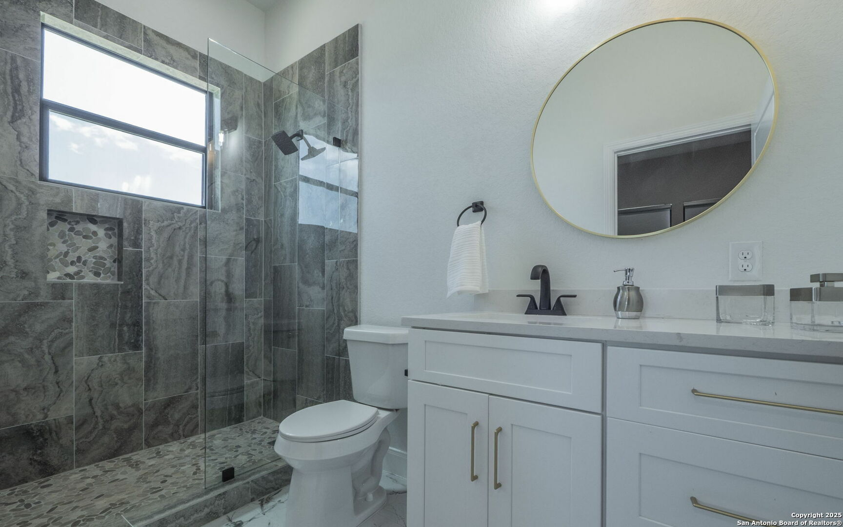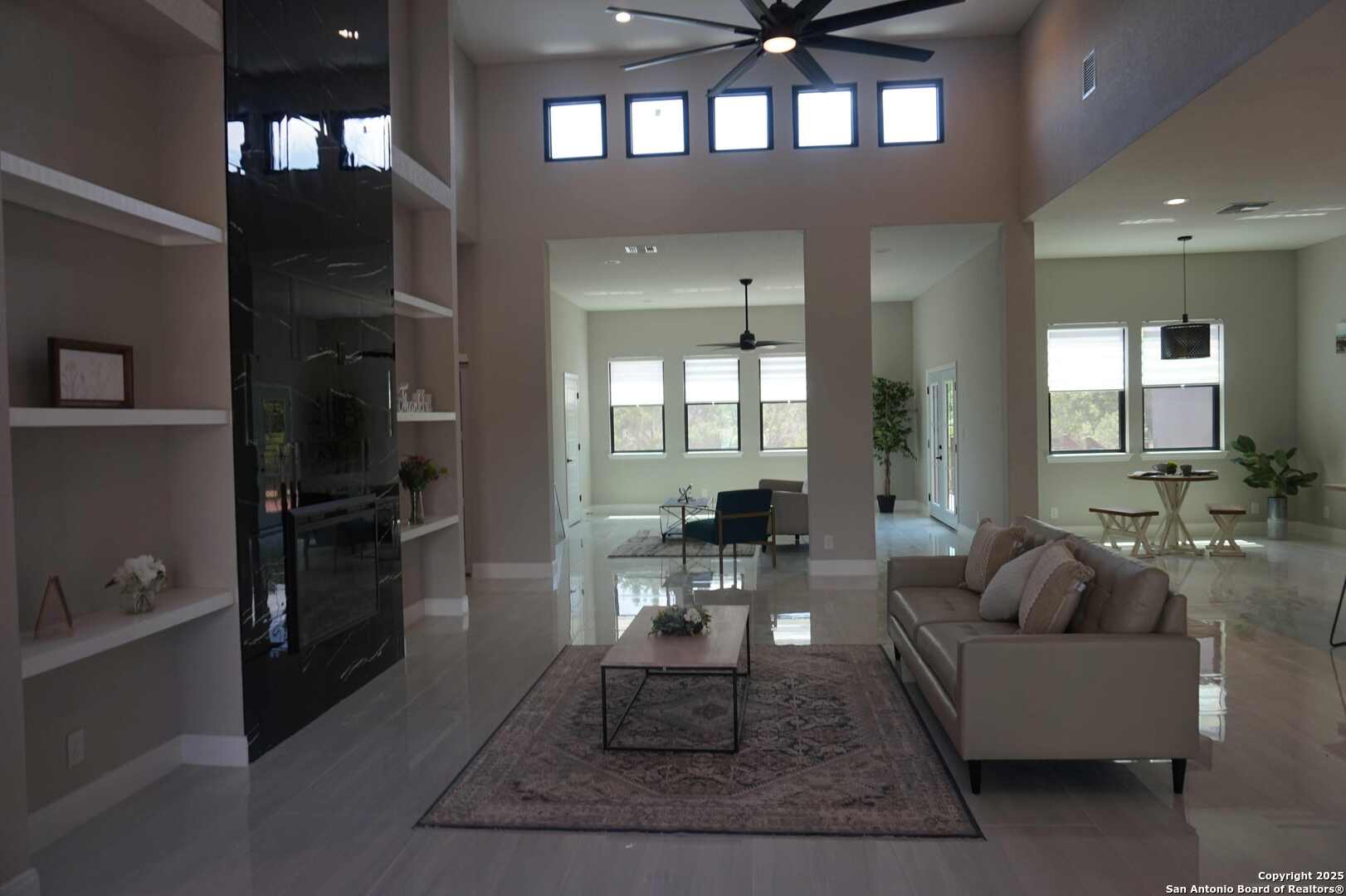 Gorgeous new residence ready to move in. This house is a dream come true. Modern, sophisticated and yet simple with good taste. Immerse yourself in the comfort and magnificense of this residence as you walk it. Make it yours! Notice the big open space everywhere, work from home at its beautiful and comfortable office or make it the perfect room for your guests. This house boasts an open concept for family and friends entertainment and, yet remains a private retreat for the family members with a full private bathroom in each bedroom and a dedicated half bathroom for visitors. Ceiling-height kitchen cabinets, quartz counter tops, big format porcelain floor and high-profile appliances are some of the add-ons. Get ready to enjoy hours of entertaiment in the family room just next to the patio deck which by the way is huge and always free of sun in the evenings. Accommodate your pick-up truck in its extra-large and extra tall garage. The lot boast 1,4 acres with green views and privacy. This is a premier custom home community on the north side of canyon lake, with private acces to the water front and the Guadalupe river. Enjoy the residents only park with tennis, basketball and pickleball courts; lake front picknic areas and a resort style swimming pool; or if you feel more like hiking, you may want to try the only for residents 215 acree natural preserve at the Guadalupe River. So, this is your chance to live like you dreamed and be the proud owner of this beautiful home. A word from the builder: The buyers are our inspiration. This house has been built with care and love for their future residents, quality is our goal. So,starting from the fundation, this one has been done with reinforced concrete, using rebar instead of the cheapest but now most commonly used tension cables, concrete reinforced with steel rebar provides a superior foundation system. As for the framing process, we do not use pre-cut lumber, to ensure the best quality we cut and assemble on site. We were supervised by a structural engineer, a master plumber and a master electrician and pass their private inspections. Quality means using the best materials and labor, so just a few examples of it are the use of window seals and baseboard made of wood instead of MDF; we used spray foam insulation in the attic for a clean, and fresh attic, adding efficiency to the HVAC. We as humans are not perfect, but I can assure you that we try our best keeping in mind the comandment of love, "love your neighboor as your self" Guizar Building has been awarded the claim-free certificate by Strucsure Home warranty for the last six years. I hope that you love this house as much as we loved building it and, can be the proud owner of a piece of art and solid construction meant to last for generations. Thank you!