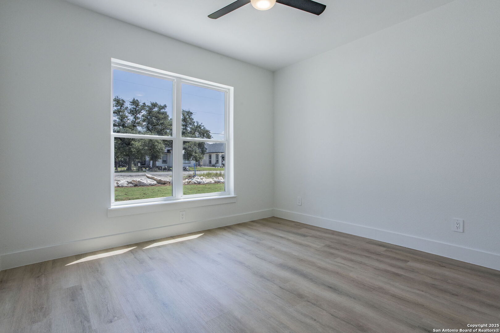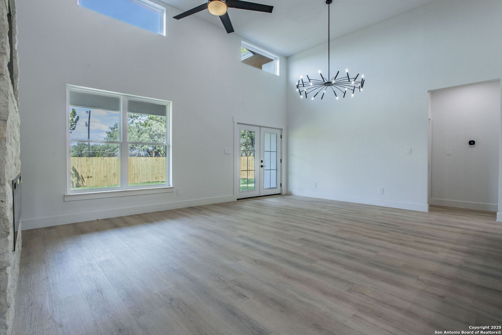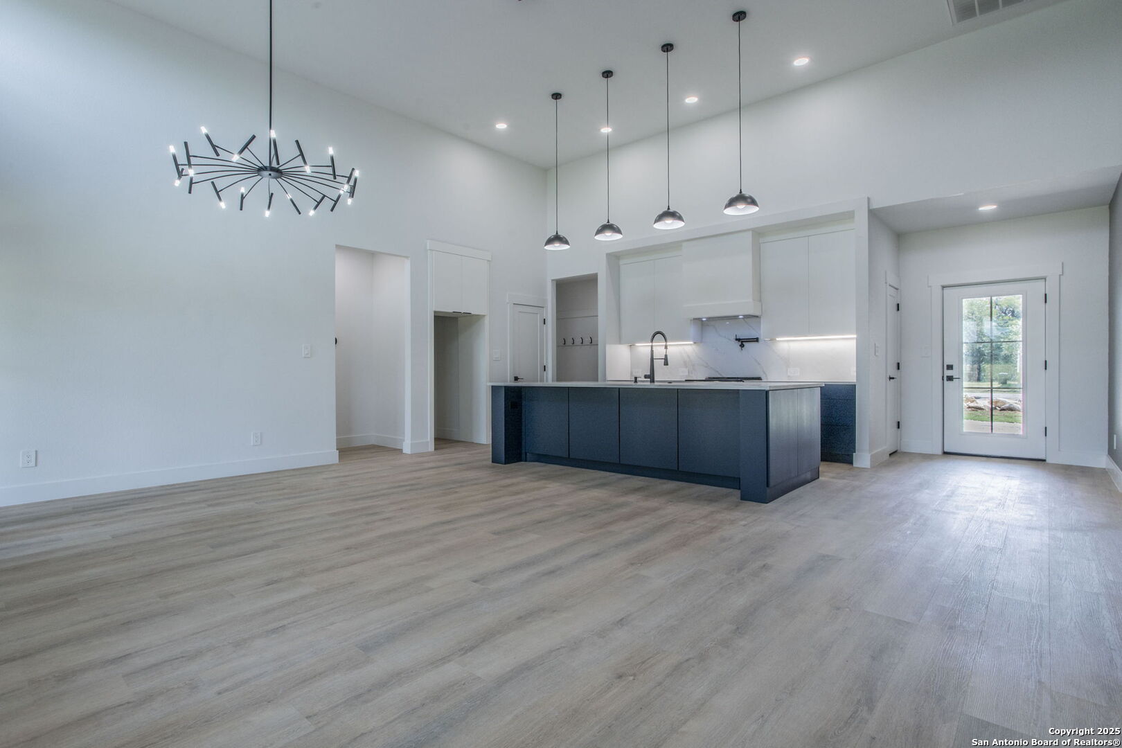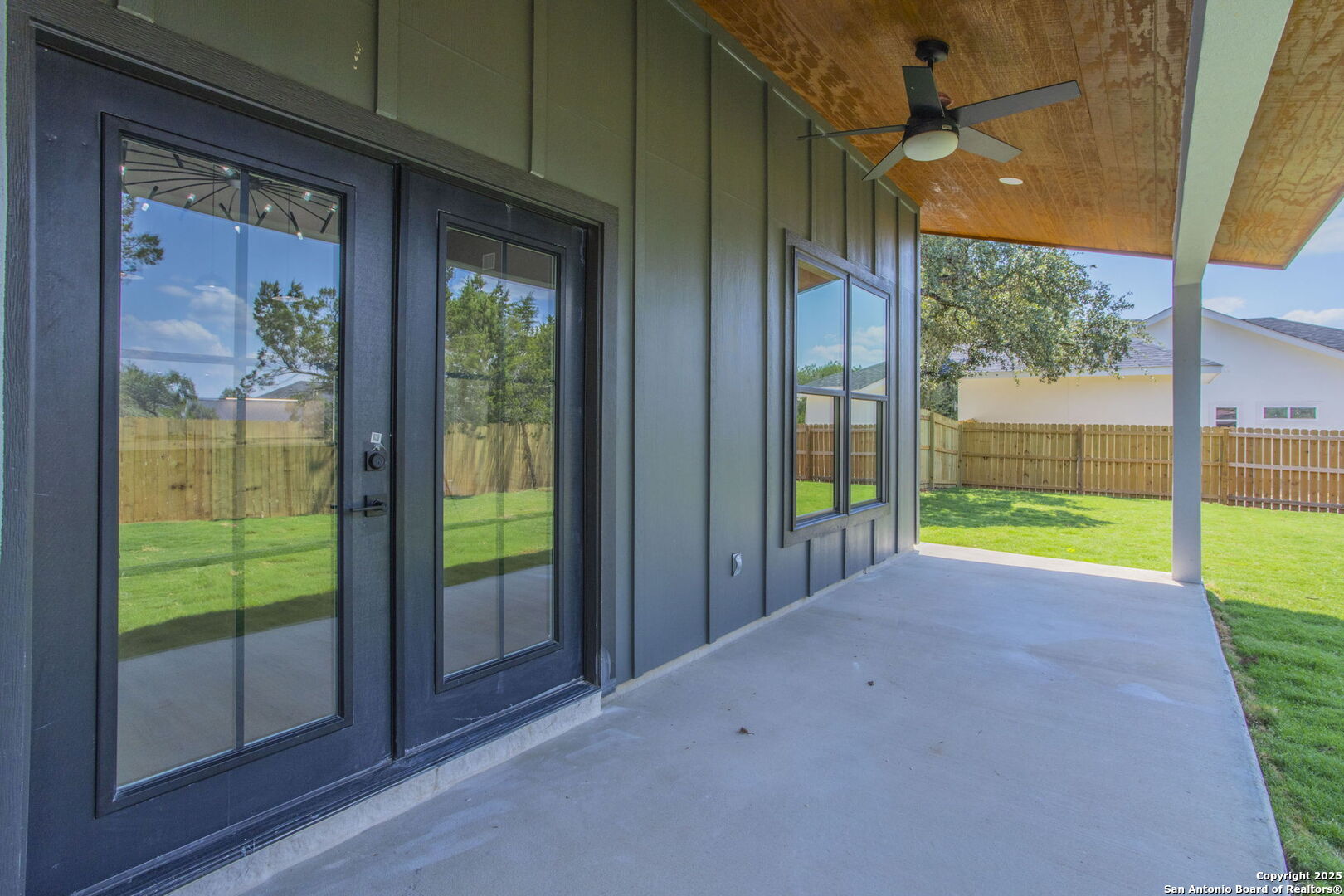Brand-New Modern Home in Cypress Cove - Designed by Dionne Architects! Step into sleek modern living with this newly built 3-bedroom, 2-bathroom, 1,625 sq. ft. home. Designed by Dionne Architects, the home boasts 14-ft ceilings in the living, dining, and kitchen areas, filling the open-concept layout with natural light. The chef's kitchen showcases quartz countertops, custom two-tone cabinetry and a large island. The spacious living room features a stone-accent wall with an electric fireplace-perfect for gatherings or quiet nights in. The owner's suite offers a spa-like bath with dual floating vanities, a walk-in shower with frameless glass, and modern finishes. Additional highlights include luxury plank flooring throughout -no carpet-, sleek black fixtures, spacious secondary bedrooms, and a covered back patio overlooking the private yard. A large driveway and 2-car garage provide plenty of parking. Located in Cypress Cove Section 11, this home combines modern design with Hill Country charm, just minutes from Canyon Lake, shopping, dining, and Hwy 281.
