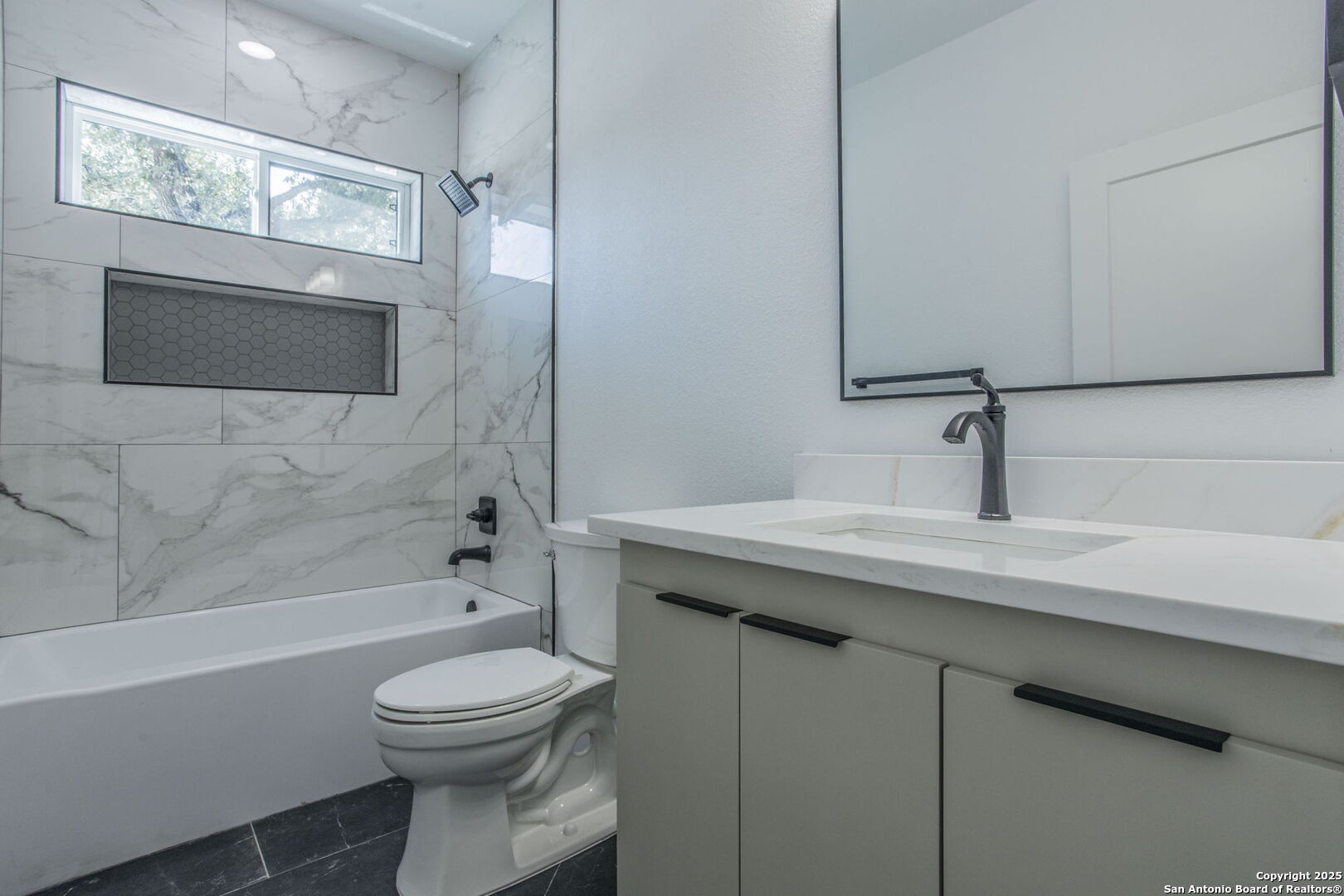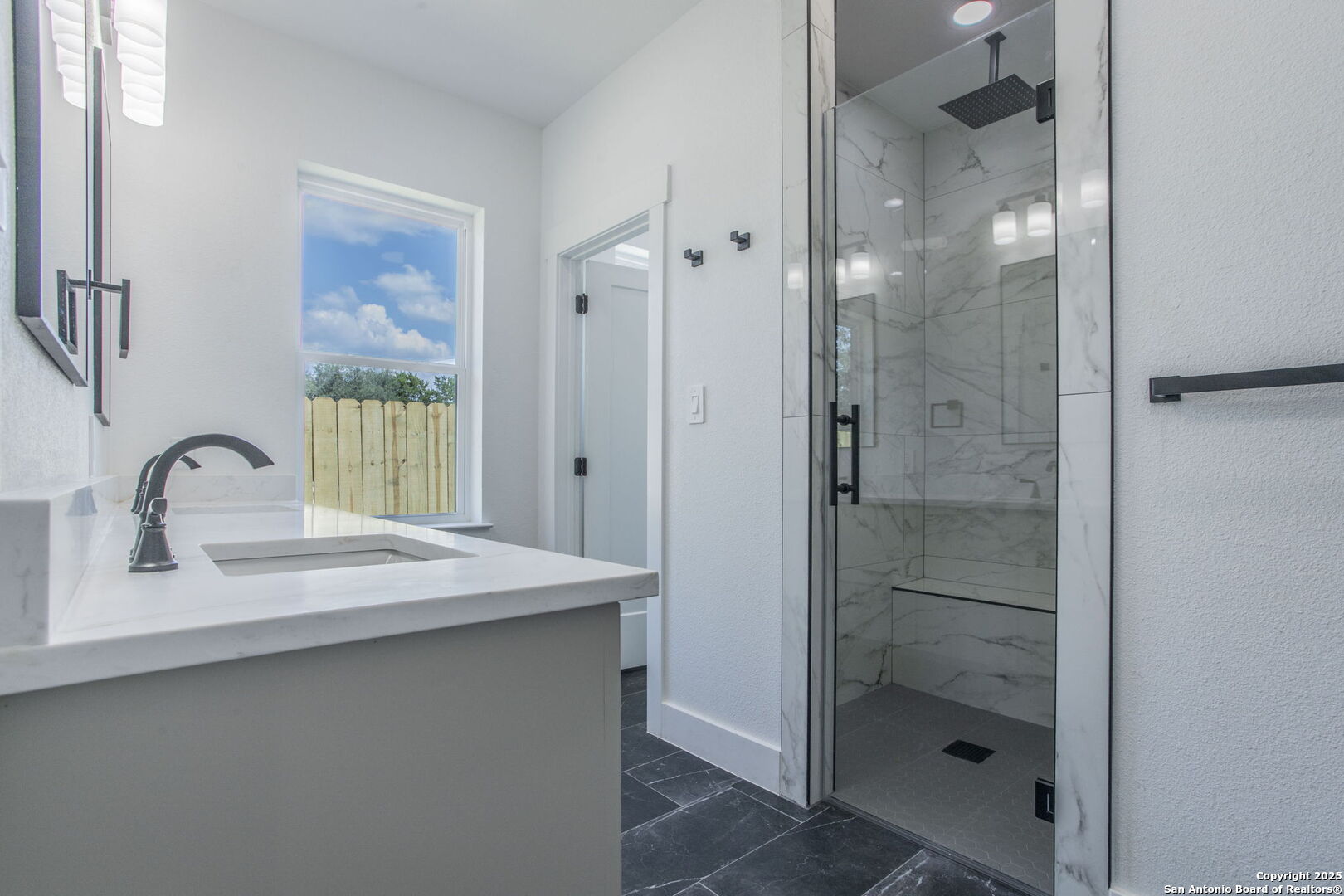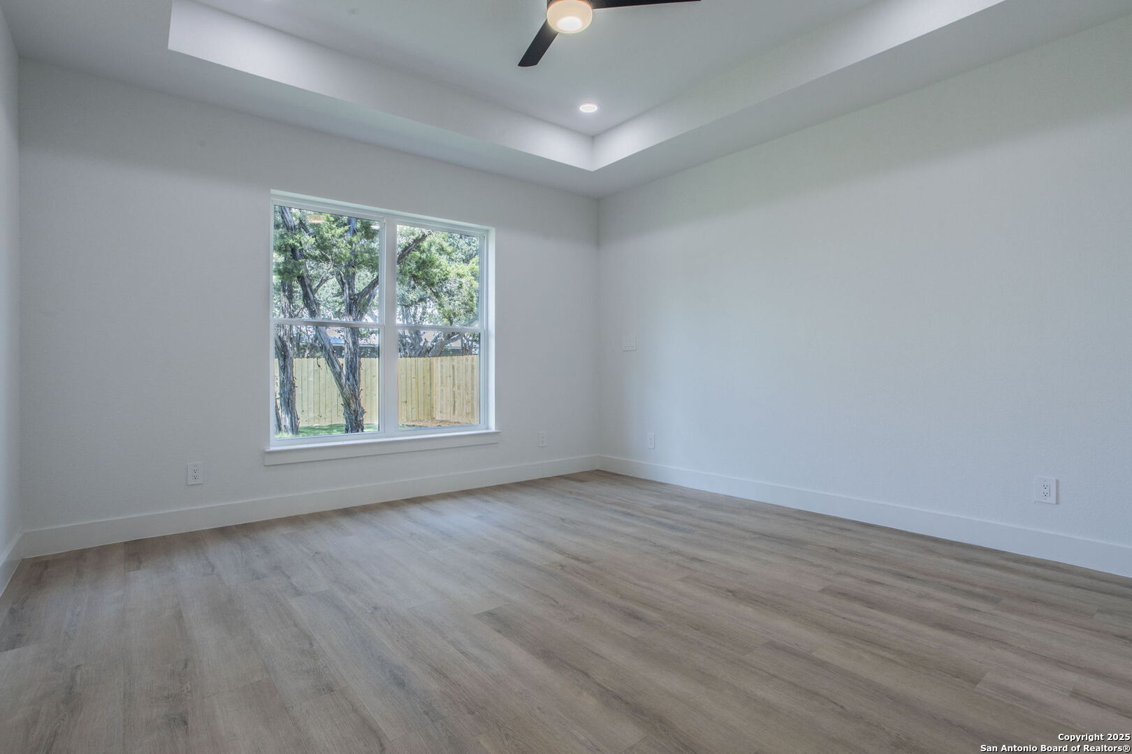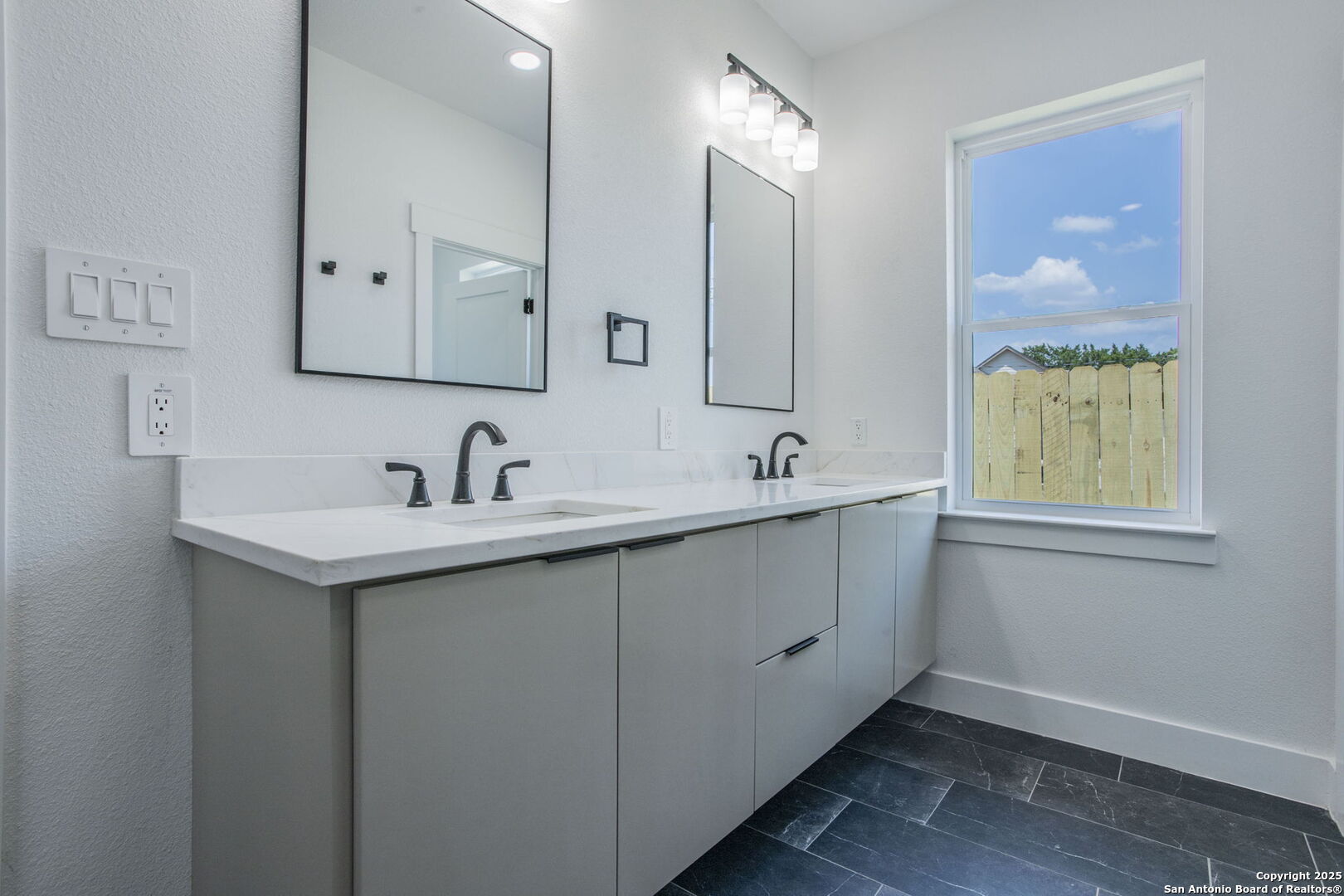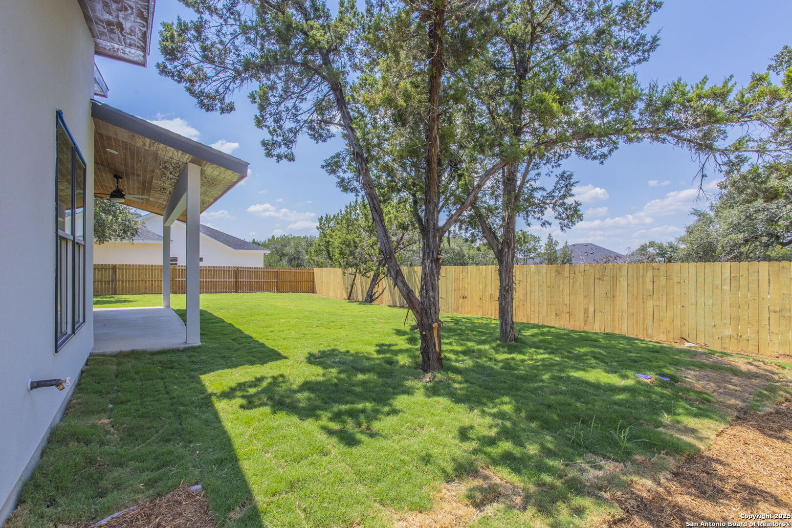 Brand-New Modern Home in Cypress Cove - Designed by Dionne Architects! Step into sleek modern living with this newly built 3-bedroom, 2-bathroom, 1,625 sq. ft. home. Designed by Dionne Architects, the home boasts 14-ft ceilings in the living, dining, and kitchen areas, filling the open-concept layout with natural light. The chef's kitchen showcases quartz countertops, custom two-tone cabinetry and a large island. The spacious living room features a stone-accent wall with an electric fireplace-perfect for gatherings or quiet nights in. The owner's suite offers a spa-like bath with dual floating vanities, a walk-in shower with frameless glass, and modern finishes. Additional highlights include luxury plank flooring throughout -no carpet-, sleek black fixtures, spacious secondary bedrooms, and a covered back patio overlooking the private yard. A large driveway and 2-car garage provide plenty of parking. Located in Cypress Cove Section 11, this home combines modern design with Hill Country charm, just minutes from Canyon Lake, shopping, dining, and Hwy 281.