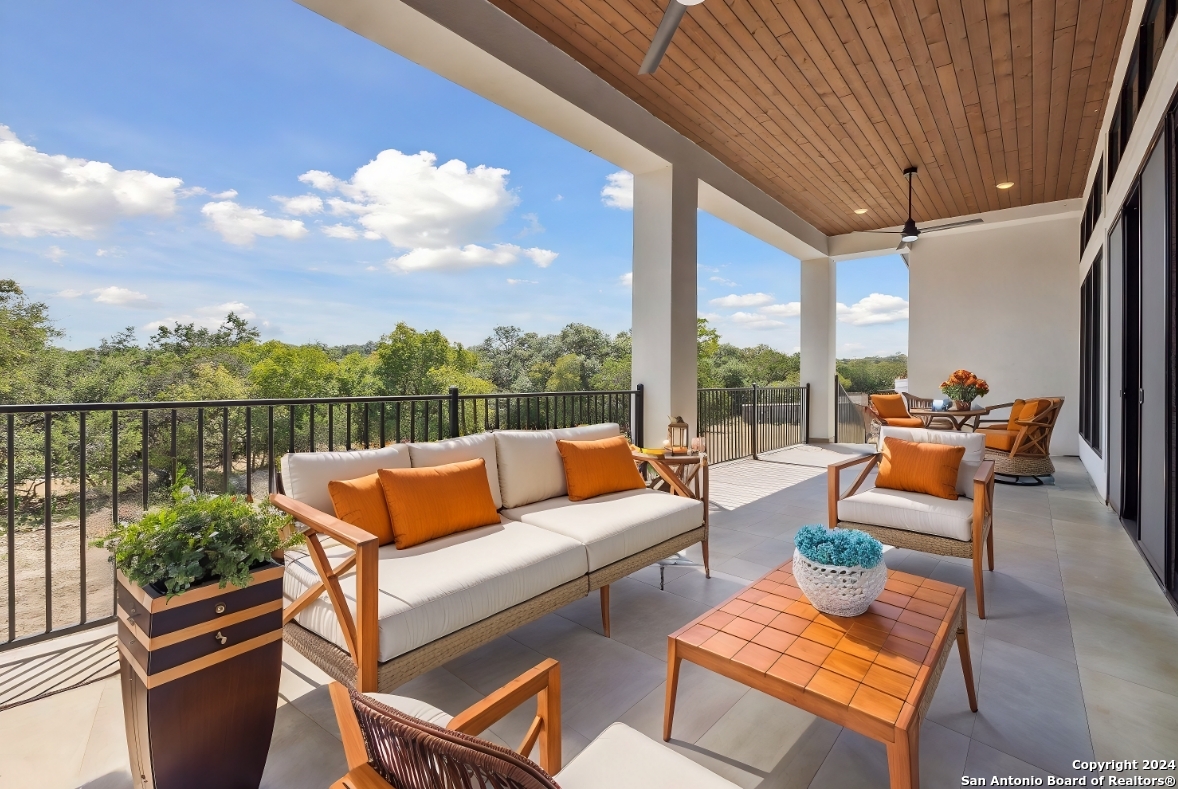 Welcome to your dream home in the much desirable Spring Branch Texas area. This remarkable .46-acre property is located in the Rivermont Subdivision and offers unparalleled luxury and convenience surrounded by nature. Featuring 3306 sq ft of luxurious living space with 12 ft decorative ceilings. Recessed lights throughout the house and ceiling fans in the bedrooms. Spacious 3 bedrooms, 3 1/2 bathrooms, plus a study with exquisite finishes throughout. Surround sound system and beautiful electric fireplace in the living room. House is equipped with a security system and water softener. Custom Kitchen cabinets, cabinet underlighting, quartz countertops, Kitchen Aide appliances, microwave and built-in oven. Master bedroom has a fireplace and a door to access the patio. Laundry room has a sink and a quartz countertop. Garage access directly into the Mudroom area. Master bath has imported Italian marble in the oversized shower, separate tub and dual vanities with quartz countertops. large master bedroom closet has plenty of shelves and drawers for storage. The other 2 bedrooms have their own private separate bathrooms with a shower surrounded with imported Italian marble. Nice oversized 2 car garage, insulated and finished flooring. Metal roof for durability and longevity. Beautiful, covered back porch surrounded by wrought iron railing, Cedar plank ceiling, 2 ceiling fans and recessed lighting. You can sit on your back porch and enjoy the view of the one of the amenities, pool, basketball court and tennis court. There is a Winery and the Guadalupe River are both within 1 mile walking distance. Private access to the Guadalupe River with Picinic areas and walking trails which is about a 2-minute drive from the house. Buyer and Buyers Agents to verify room dimensions, taxes, and schools.